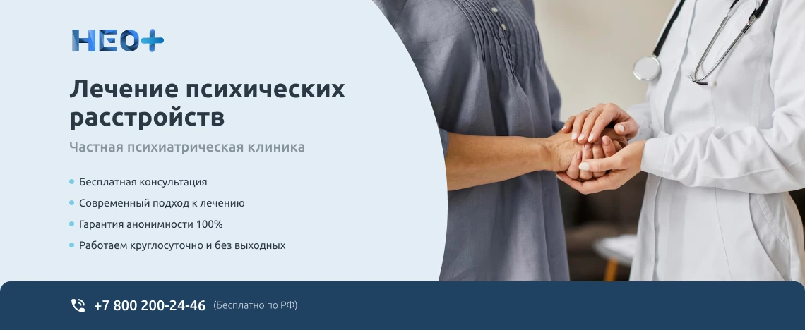 Депрессия – эмоциональное расстройство, которое влияет на качество жизни и отражается на межличностных отношениях. В запущенных ситуациях у пациента могут появляться суицидальные мысли, что делает его опасным для себя самого. Без помощи специалистов нормализовать состояние и вернуться к нормальной жизни не всегда возможно. Необходимо лечение депрессии. Провести процедуру можно, обратившись в клинику «НеоПлюс» в Сорочинске. У нас работают психотерапевты, способны помочь даже в тяжелых случаях. Они проведут предварительную диагностику, грамотно поставят диагноз и назначат правильное лечение. Чтобы начать сотрудничество, позвоните по телефону ☎️ +7 (800) 200-24-46 или воспользуйтесь формой обратной связи на сайте. Доверяя лечение нам, вы ускоряете процесс нормализации состояния и сможете быстрее вернуться к обычной жизни.